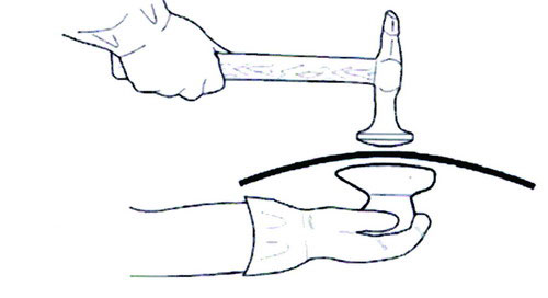 1. 用橡膠錘或木錘配合使用木頂鐵進行修復