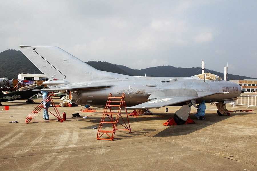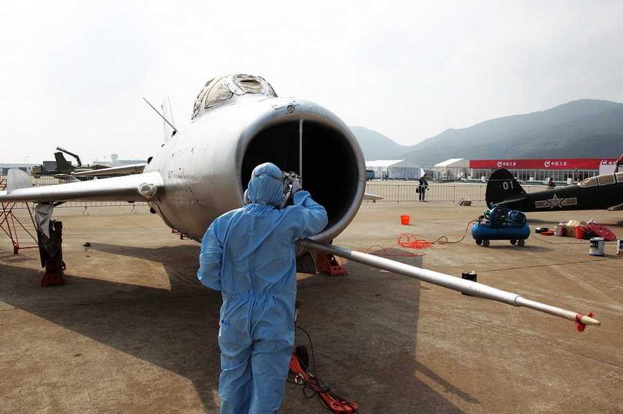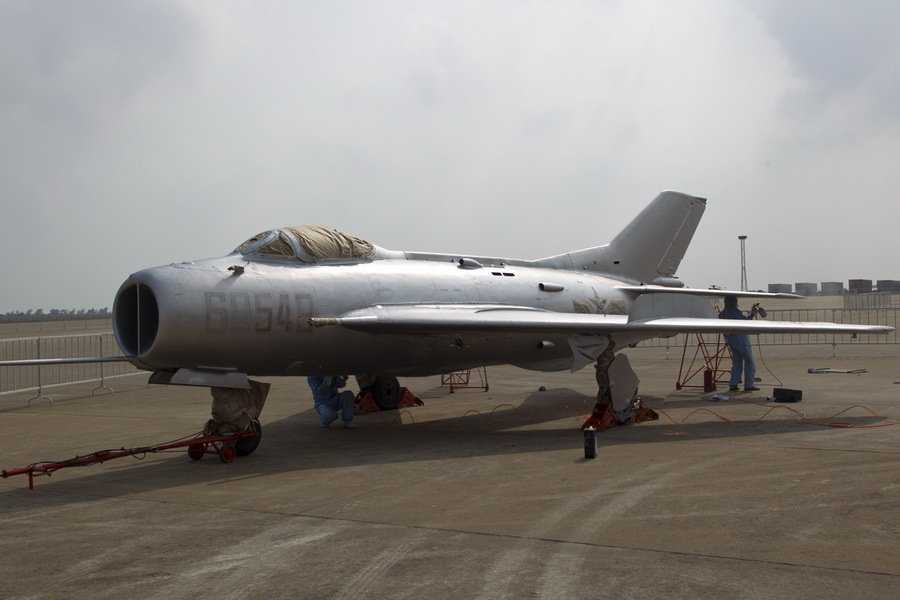 工作人員在整修60549號(hào)殲6。