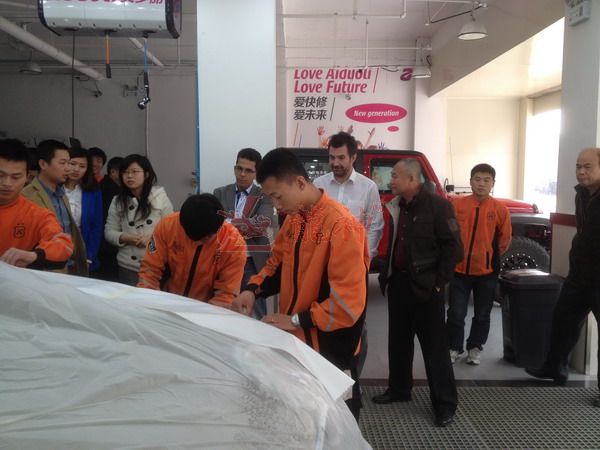 2013年特邀國(guó)外專家赴北京車爵士演示車縫泡膠條的使用 本司訊:2013年4月北京晴空萬里,龍神公司特邀英國(guó)專家一行五人,來到了北京車爵士進(jìn)行汽車噴涂遮蔽技術(shù)交流。首先公司一行了解車爵士的汽車噴涂情況及詢問了使用的遮蔽工具情況。隨后英國(guó)專家針對(duì)在汽車噴漆時(shí)難噴涂的車門縫隙、玻璃死角等地方的專業(yè)遮蔽工具的演示。車縫泡沫膠:用于車身所有縫隙的遮蔽,有效隔離及遮蔽漆霧噴入車縫里。 2013-04-08 11768