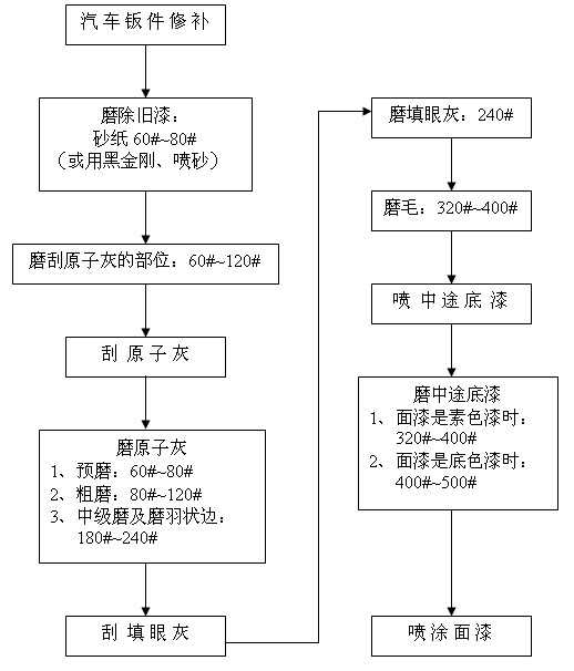 汽車修補(bǔ)干磨程序及砂紙的選擇 備注: 1、除舊漆時(shí)采用黑金剛配除漆除銹機(jī)能夠快速地除去平面、狹縫及凹凸不平表面的舊漆與銹漬;采用噴砂槍噴砂還可以很快地去除某些孔隙、縫隙或手都很難伸進(jìn)去的部位的舊漆與銹斑; 2、在磨填眼灰、中途底漆和尤其有邊角位、弧度位的表面時(shí)配打磨緩沖墊(置于圓盤砂紙和托盤之間)能夠使打磨作業(yè)更加順暢,并能獲得規(guī)則的表面質(zhì)量。 2007-08-25 12274
