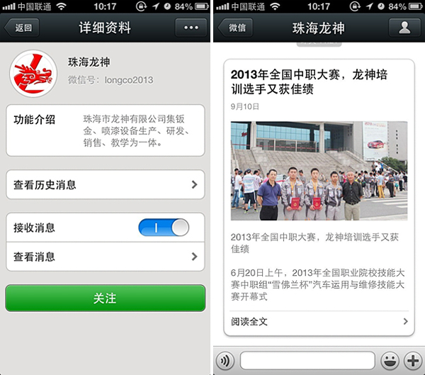 珠海龍神官方微信敬請(qǐng)關(guān)注! 珠海市龍神有限公司公共微信號(hào)已申請(qǐng)成功,請(qǐng)大家多多關(guān)注! 掃描二維碼,也可直接搜索公眾微信號(hào)“珠海龍神” 我們將不定期發(fā)布公司最新資訊。 您也可以發(fā)消息和我們進(jìn)行互動(dòng)。 查看歷史消息收看您錯(cuò)過(guò)的動(dòng)態(tài)新聞,讓您第一手掌握最新動(dòng)態(tài)。 2013-09-18 15934